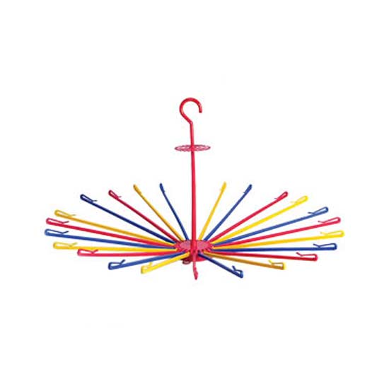 The folding hanger features 24 sticks for hanging towels, ties, socks, dresses, etc. It comes with a hook in the middle for attachment. This colorful stick hanger will provide for all your hanging needs.