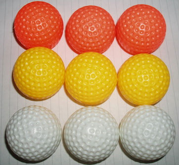 Exceptionally tinged with vibrant colors of yellow, red, blue and so on, these golf balls boost your mood up in every game surely. The high quality plastic ensures a long lifespan as well.