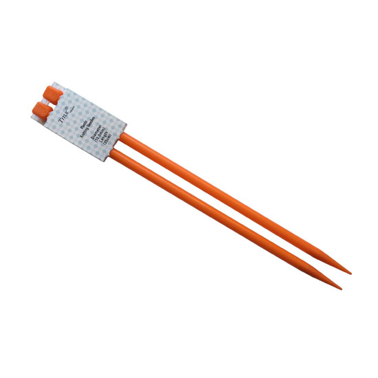 This is a pair of plastic knitting needles with an orange finish. It is designed for weaving knitted fabrics. It is made of quality ABS to offer a long service life.