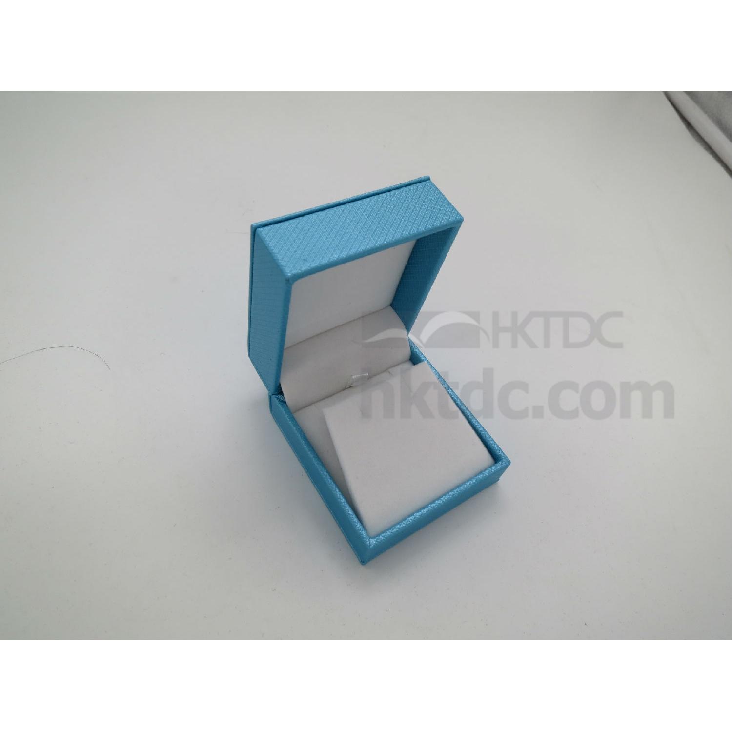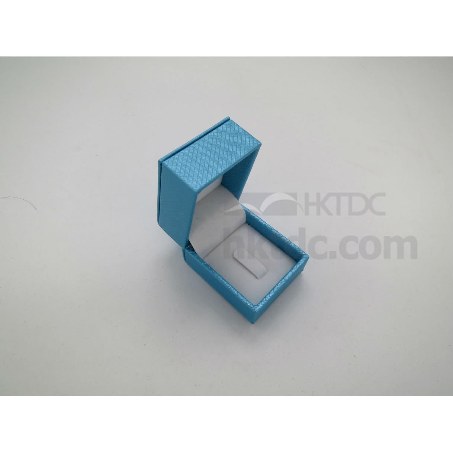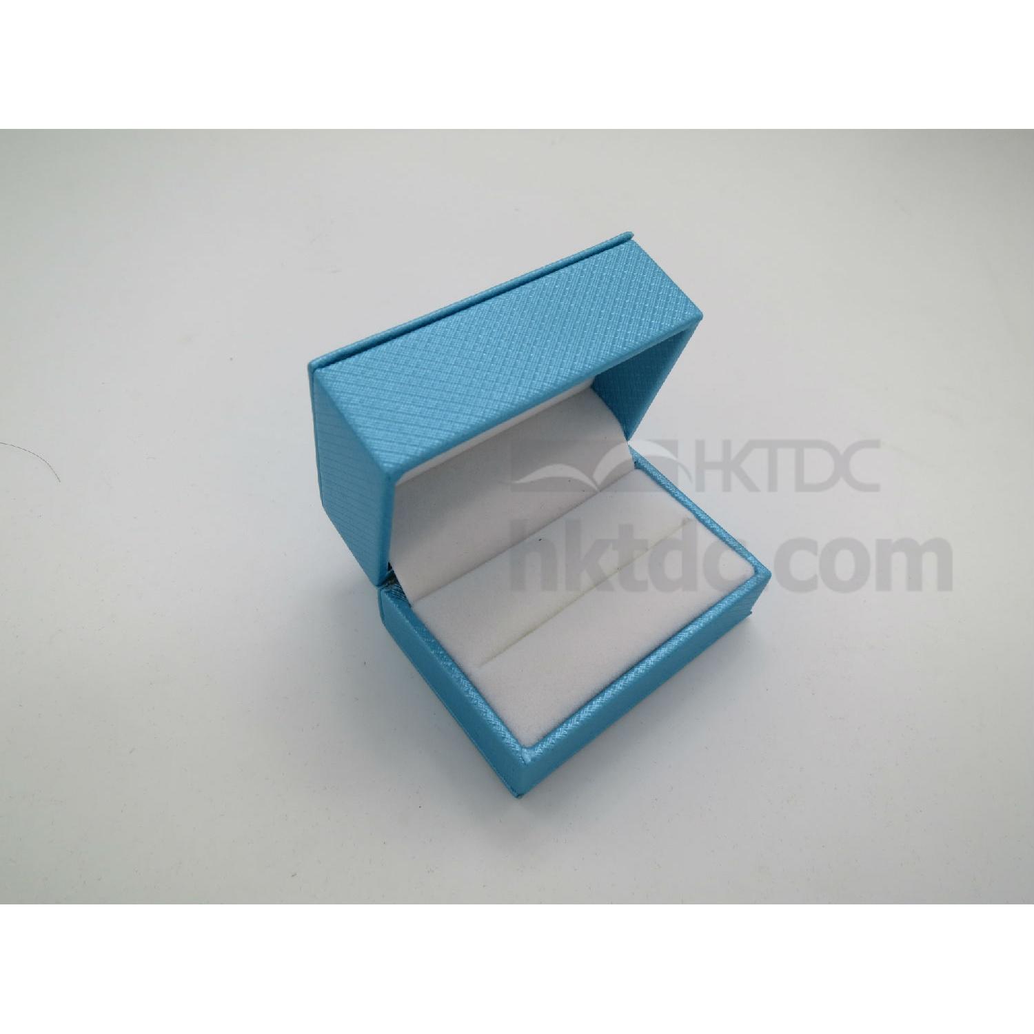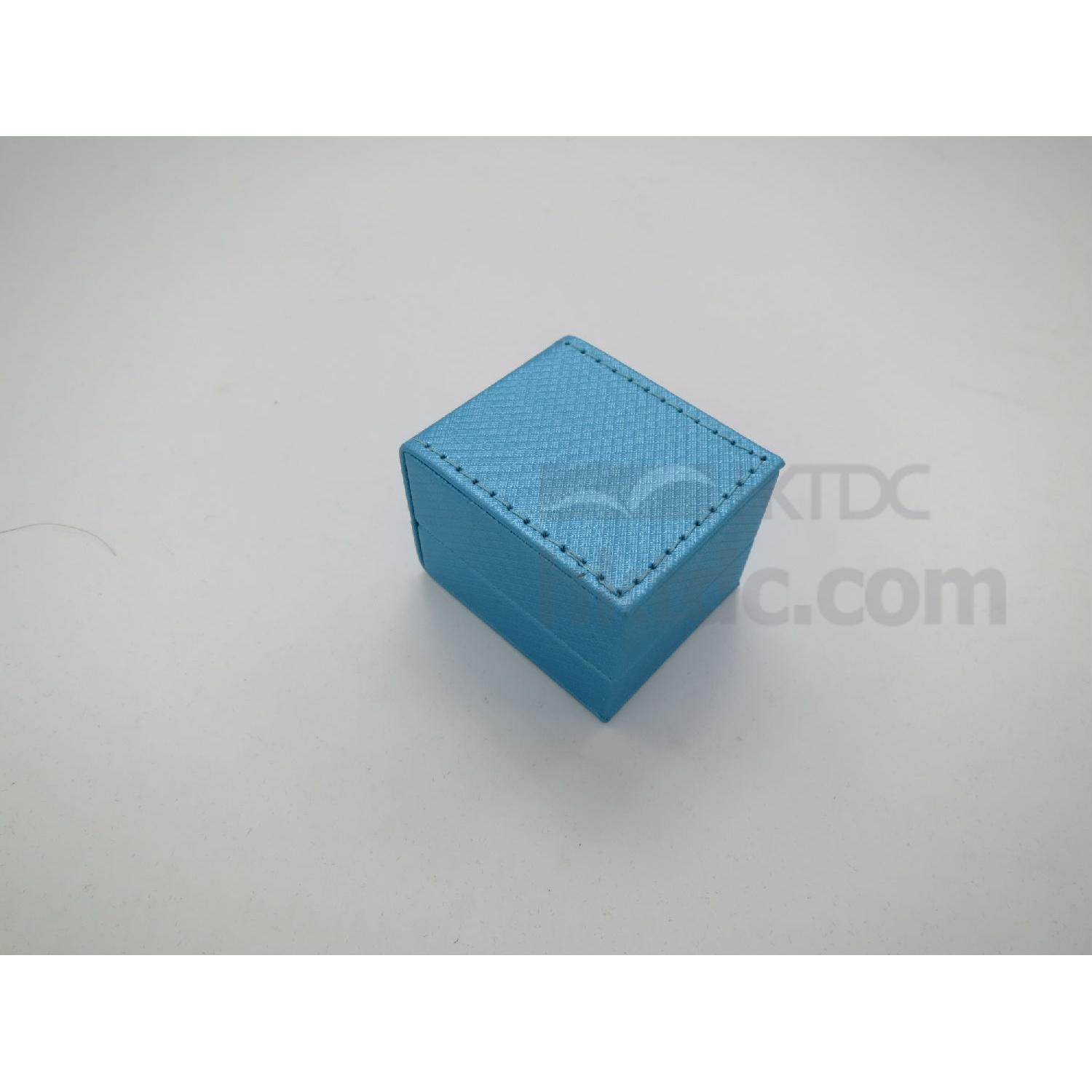 This is square shell box covered with leather, size is 46*52*37mm for ring, the plate with stitch decoration. Inner made by velvet, ring clip