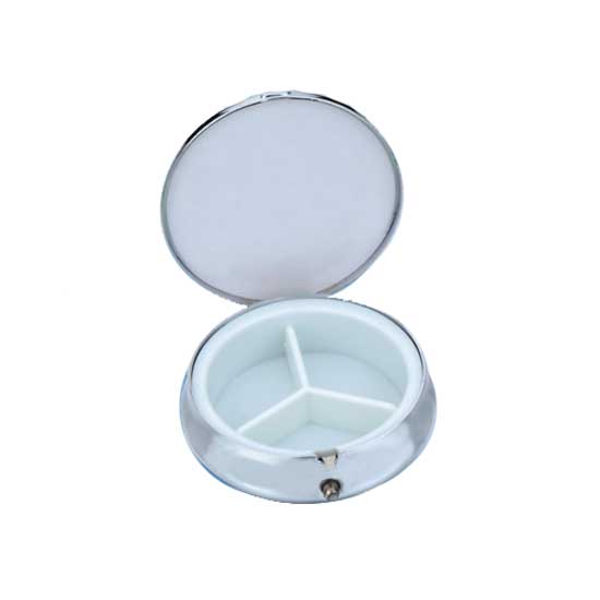 This pill box comes in a classical circular shape for easy storage. The 3-compartment design allows you to organize pills neatly. This pill box is a nice helper when traveling.