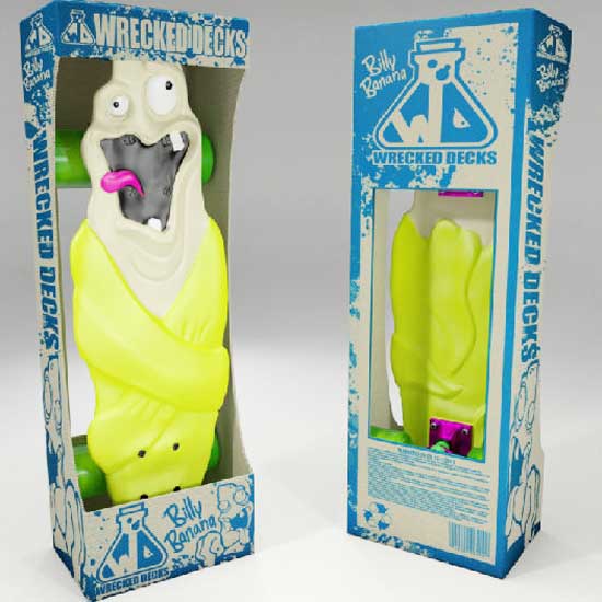 This skateboard in yellow and green stands out from others with its wrecked and funny designs. It is constructed from plastic for added endurance. This distinctive skate board is a wonderful gift for your little one.