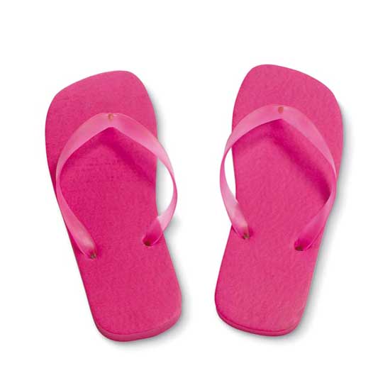 This pair of flip-flops is designed in allover pink. Each sole features a soft and comfort structure. This pair of slippers is ideal for wear on hot summer days.