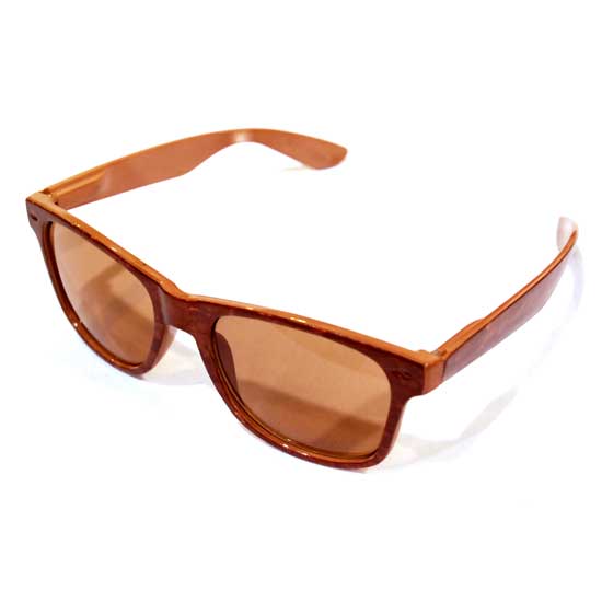 This pair of fashion sunglasses touts a durable and lightweight plastic construction. The wooden-like appearance adds a sophisticated touch. Enhance your fashion closet with this pair of trendy glasses.