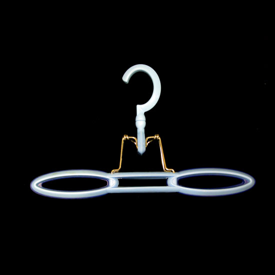 Presented here is a hanger that is specially designed for hanging trousers. The fine-quality plastic construction promises durable use. This plastic trouser hanger features a curved hook, allowing it to fit nearly any closet rod.