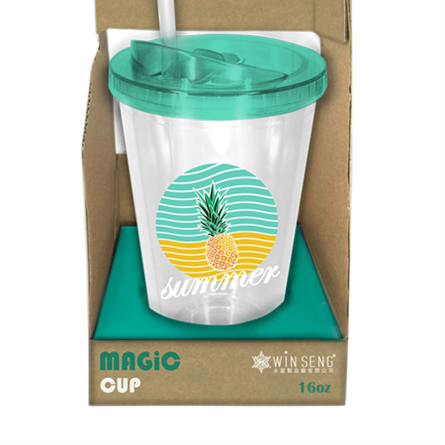 Perfect for summer, this 16-ounce tumbler flaunts a tropical design with a vibrant pineapple print. It includes a spill-proof lid in a contrasting tone and a reusable straw, providing handy ways for sipping your favorite beverage without making a mess.