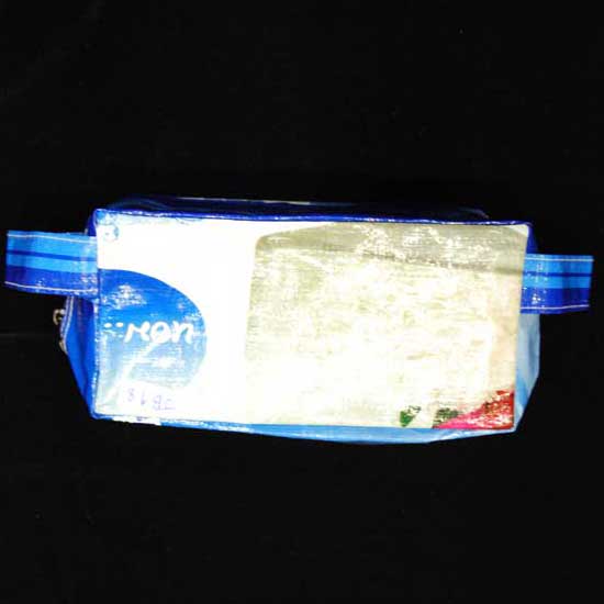 This plastic waist bag has a small rectangular shape. It features a zipper closure which is easy to pull. The versatile bag can be used to store items like cosmetics, stationery and skin care products.