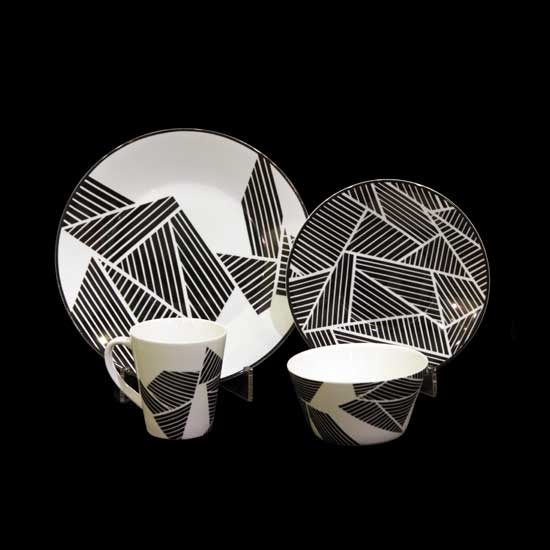 This stylish tableware set includes one bowl, one cup and two plates. All the pieces are made of high-quality porcelain for a long service life. This set comes with white-and-grey abstract patterns for a unique touch.