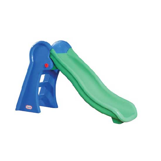 Displayed is a playground slide made of heavy-duty plastic to give superior intensity. This playground slide is suitable to place in a backyard garden. This playground slide makes a fun and special toy for young kids.