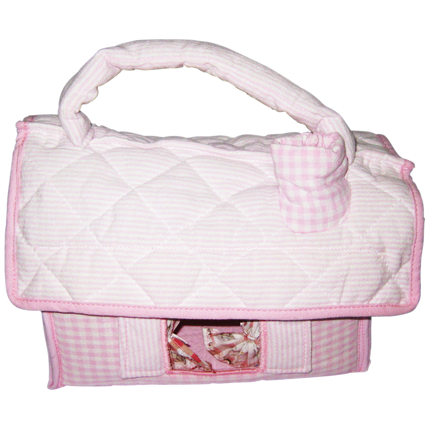 - House with allover stripe and checkered patterns.