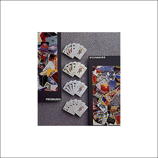 Shown here is a standard set of playing cards. Made of high quality material, the cards are durable and easy to shuffle. Each card comes in standard poker size, with a regular index. The deck is packed in a matching card box and makes a practical souvenir and gift for anyone who enjoys playing card games.