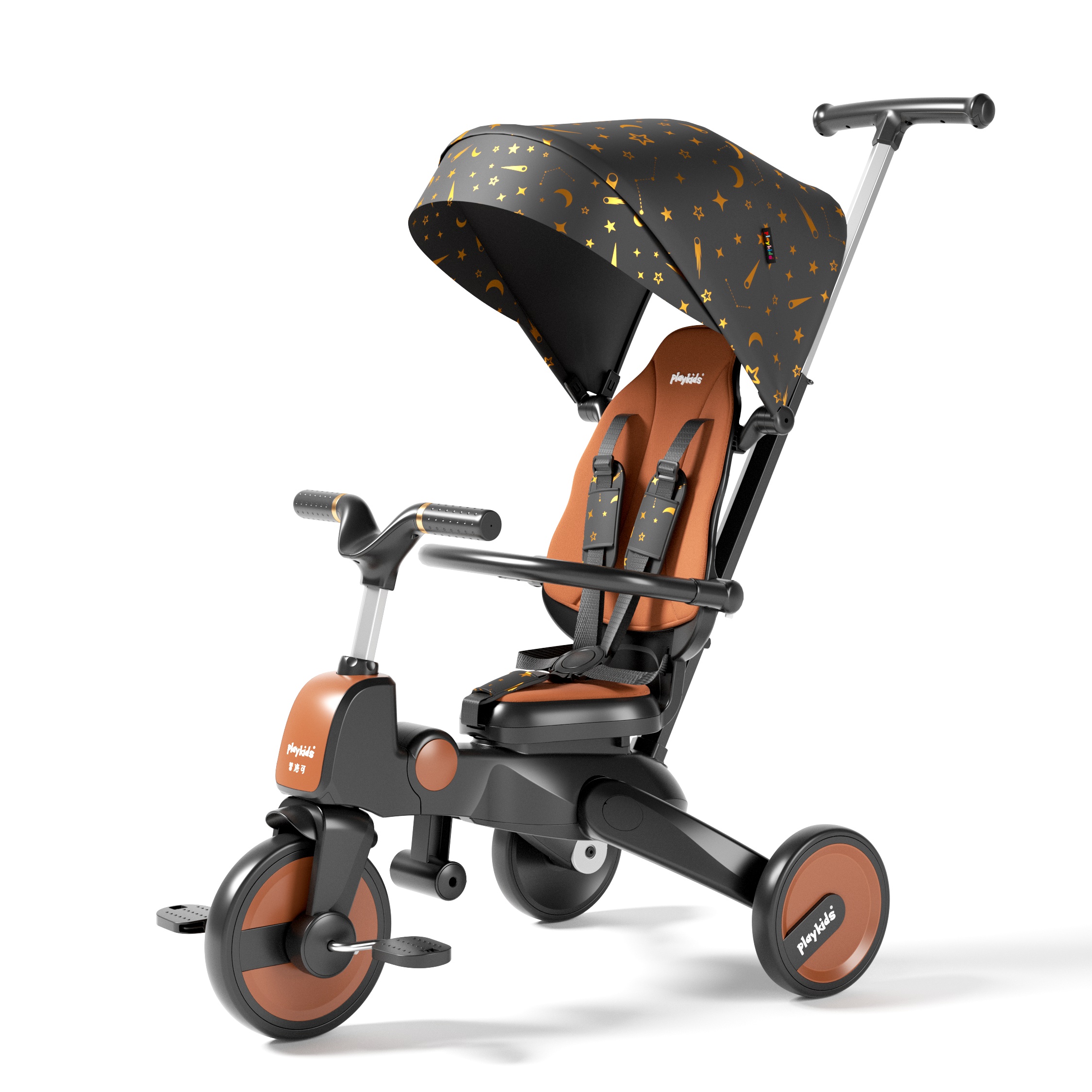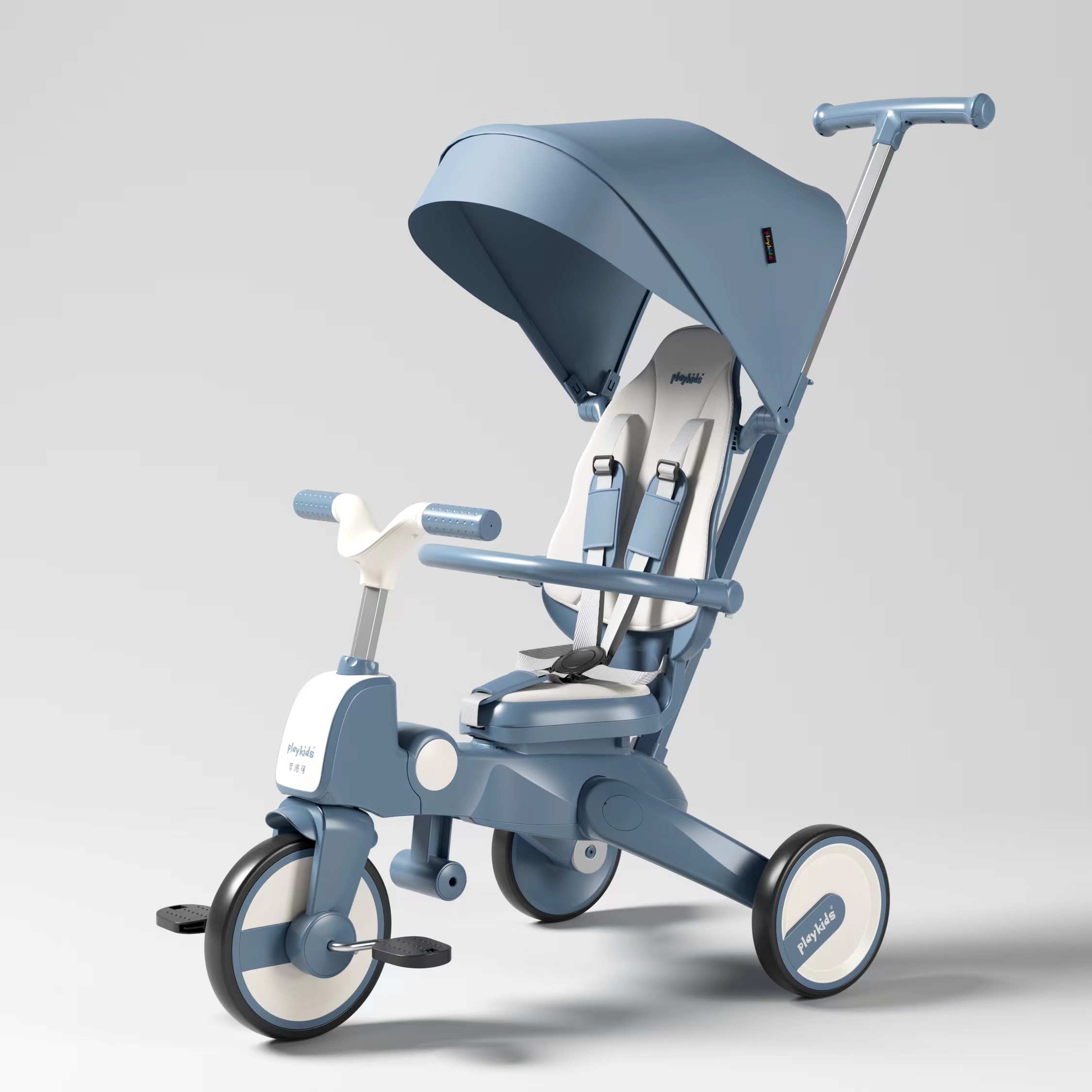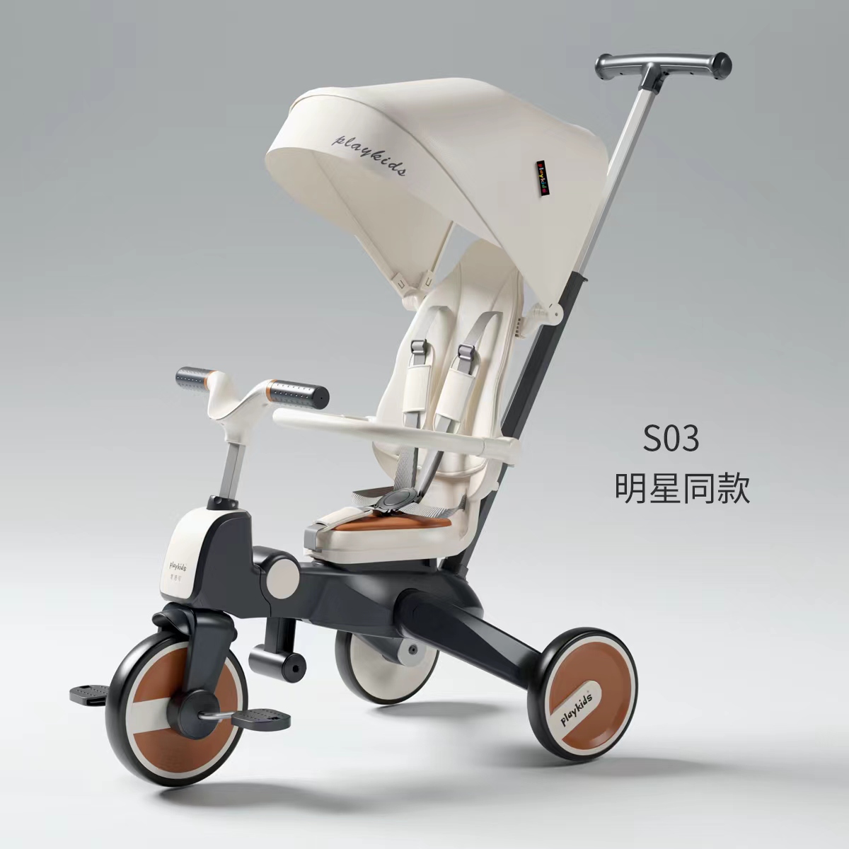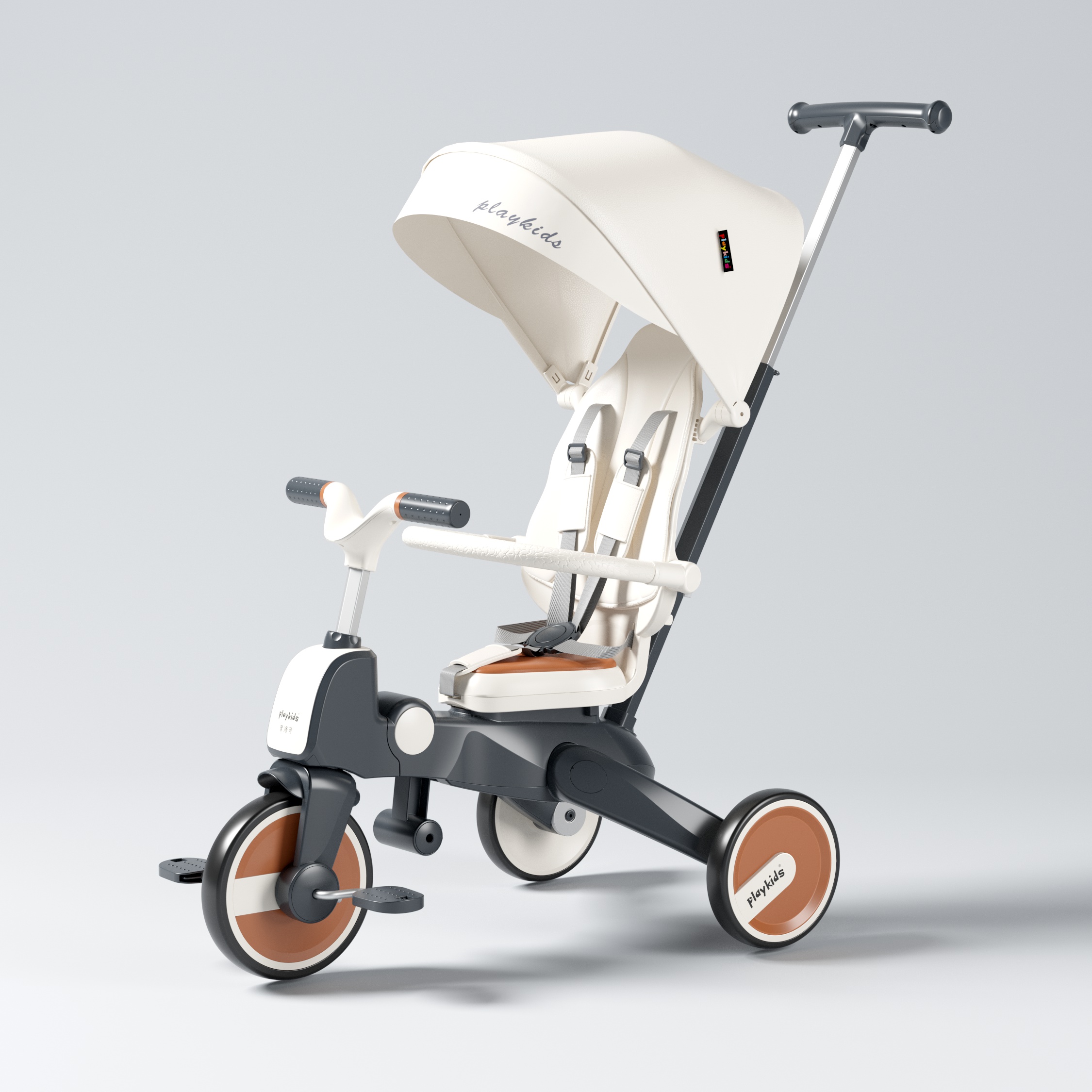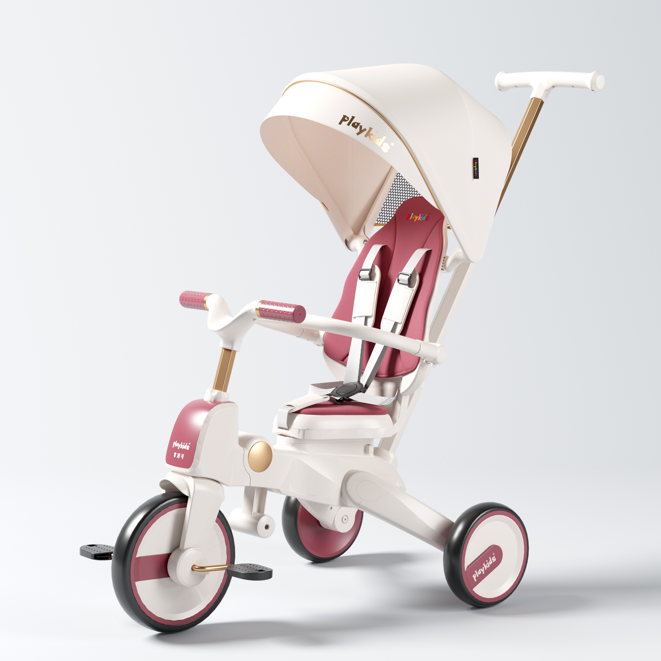 7种模式轻松转换(1. 三轮车; 2.三轮车+推杆;3. 三轮车+推杆+座位靠背;4.三轮车+推杆+座位靠背+围栏;5.三轮车+推杆+座位靠背+围栏+太阳蓬;6. 三轮车+推杆+座位靠背+围栏+太阳蓬;7. 三轮车+推杆+座位靠背+围栏+太阳蓬+座位转向与妈妈面对面)