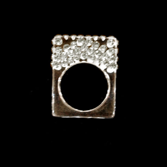 This gorgeous ring is finely crafted of plexiglass in highly glossy finish. The finger ring features square-shaped construction accented with brilliant Swarovski crystal ornaments. With hues of slight gold color, it is sure to create a sparkling and luxurious effect.