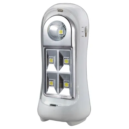 Smoothly shaped with curved lines, this emergency light comes finished in all-over blue or white for a refreshing design. It features 4 evenly distributed LED chips at front for powerful illumination. The torch is placed on the top for emitting more concentrated light when needed. Keep one in your home or office in case of any urgent situation of sudden power failure.
