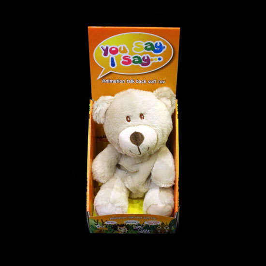 This is a toy bear in allover beige with a cute look. With a soft and plush texture, children will surely love to hug it any time. Give your beloved one a surprising birthday gift with this fluffy bear.