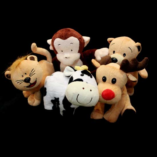These cute plush animals feature the designs of a cow, bear, lion, monkey, etc. The stuffed plush animals are soft to touch. This plush animal set is a wonderful gift choice for children.
