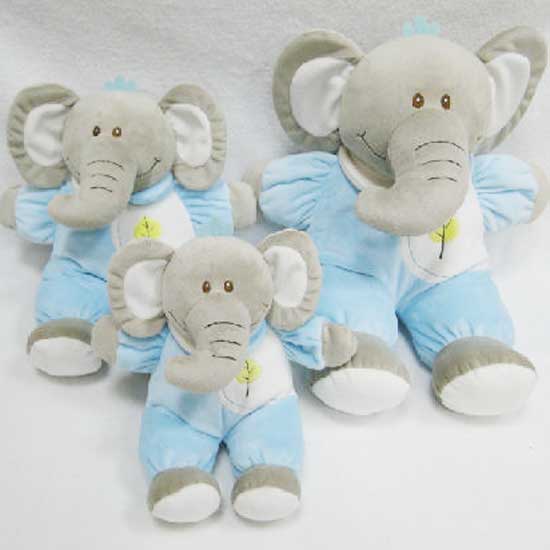 This is a series of plush baby elephants with a cute and cuddly appearance in different sizes. The furry construction offer exceptional comfort to a kid's hands. The cute stuffed toy makes a perfect sleeping companion for kids.