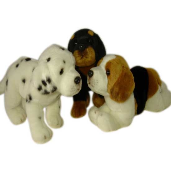 Displayed is a plush doll in the look of lovely puppies which appeal to little children. The soft-stuffed body is comfortable for cuddling. This plush dog will become one of your child's favorite huggy doll.
