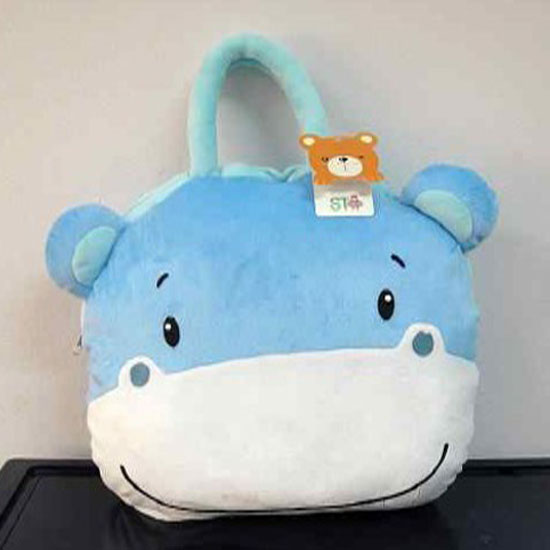 This is a toy handbag that is made of safe and non-toxic material. It features a cute and attractive look in blue and white. This toy handbag allows kids to store snacks and toys easily.