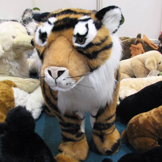 The plush toy tiger in a standing posture. It looks like real. It is suitable for people in all ages, especial for children.