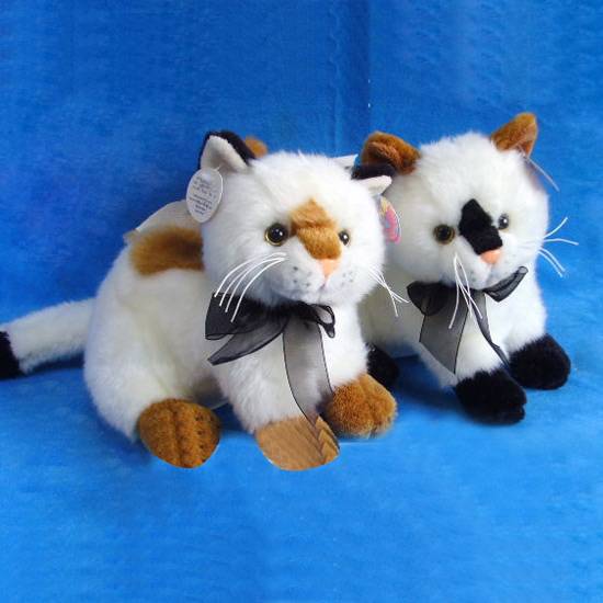 These are two assorted plush cats. The two plush cats are at the same size. They can be used as gifts for friends and children.