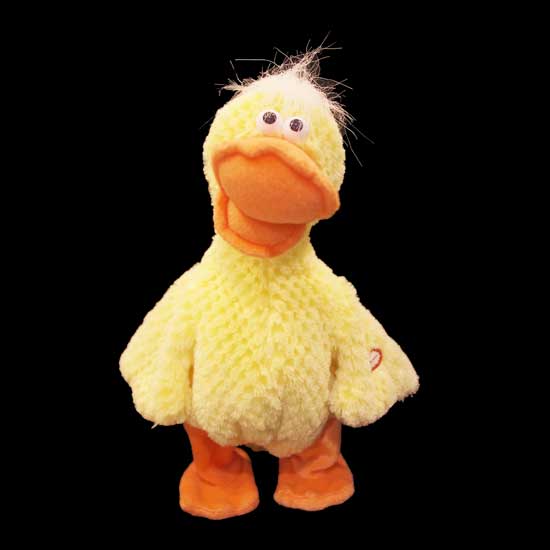 This plush toy features a duck shaped appearance in yellow and orange. It is designed with sounds for extra fun. This cute plush toy duck is ideal for accompanying your little one.