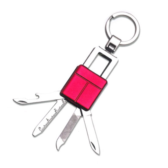 This pocket knife comes with a little padlock design. It features a total of four knives to suit different functions. The bright red finish is both smart and stylish.