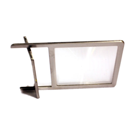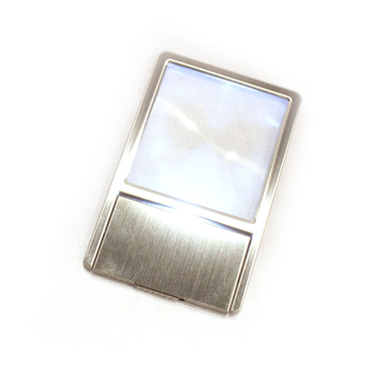 Displayed here is a pocket magnifier with a sturdy metal housing. It is equipped with an LED light source for adequate illumination. Featuring a compact design, it is easy to snap into your pants’ pockets.