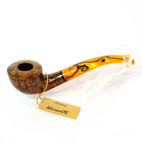 This elegant pocket pipe is made of a briar wood mouthpiece and a patterned lucite stem. The finely crafted pipe showcases a polished finish. The durable pocket pipe can be used repeatedly for a long time.