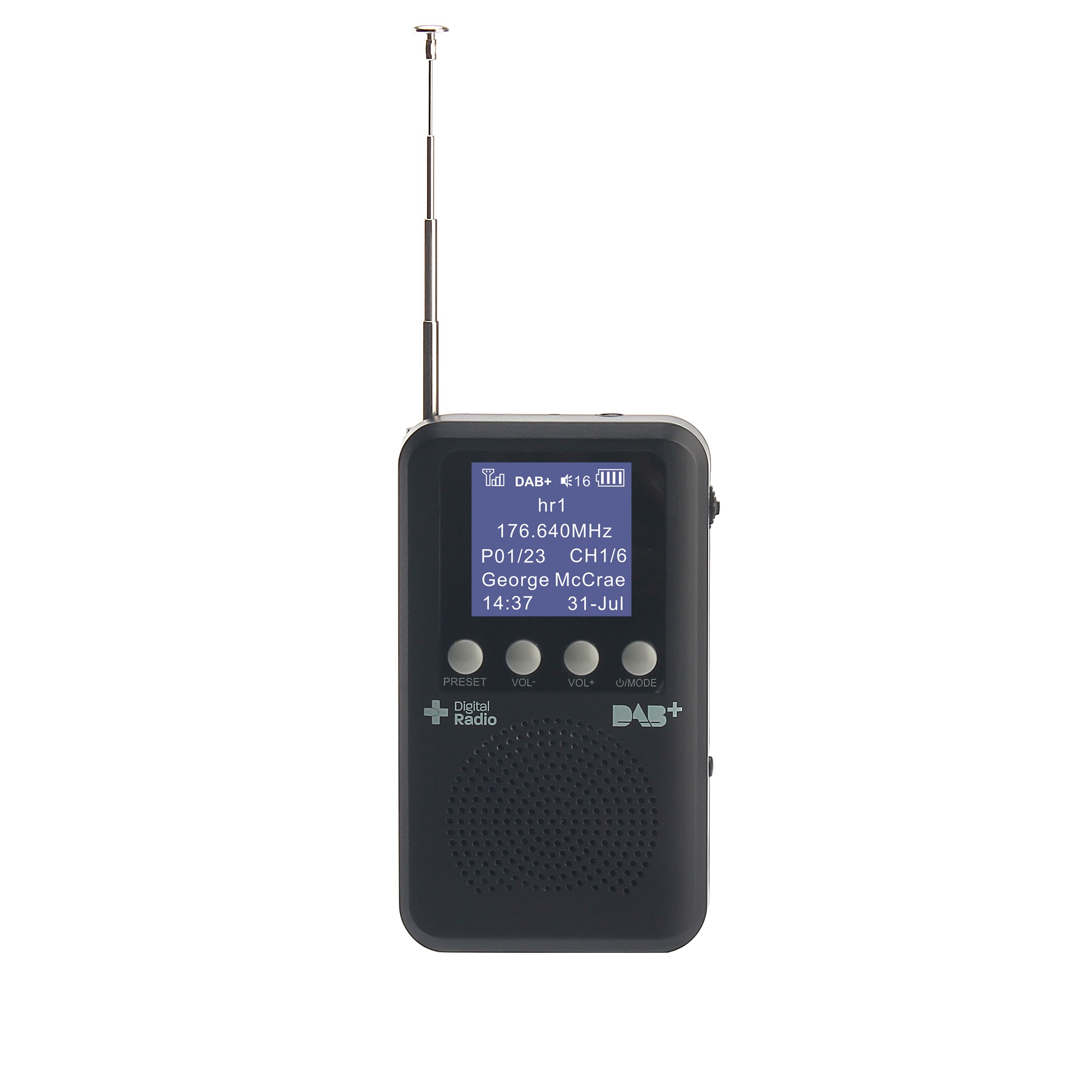 • Radio format support: DAB+ and FM radio