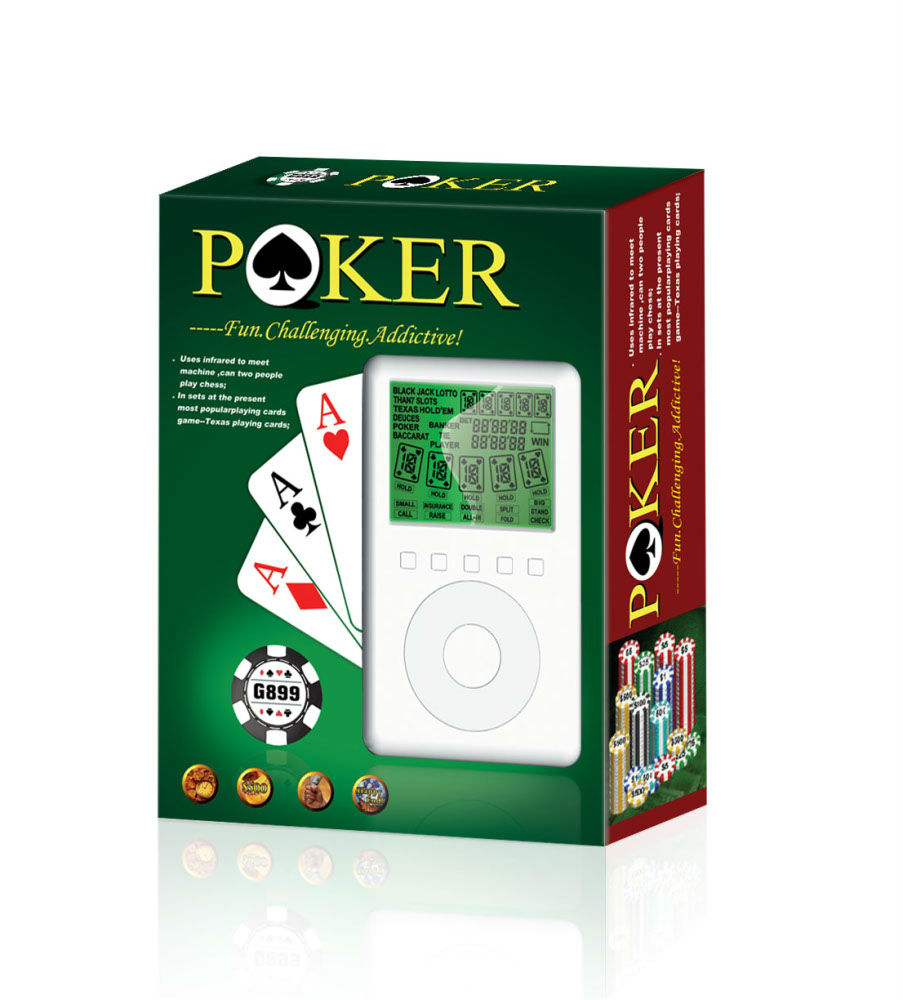 1, Uses infrared to meet machine ,can two people play chess; 2, In sets at the present most popular playing cards game--Texas playing cards; 3 In sets at 8 to gather a game, including: BLACK JACK, BACCARAT, POKER, TEXAS HOLD' EM, DEUCES, THAN 7, SLOTS, LOTTO; 4,The game rule and the percentage are completely same with the Las Vegas gambling game rule; 5 The contact surface distribution is reasonable, ease of operation, one-handed operation.