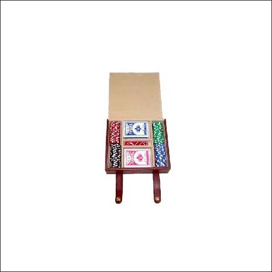 Poker set with 2 decks, 5 dices and 4 different colours of poker chips