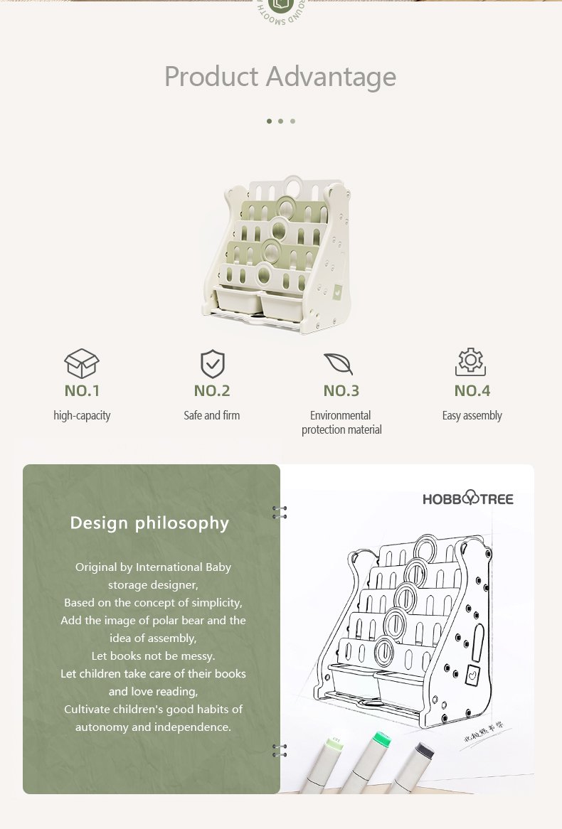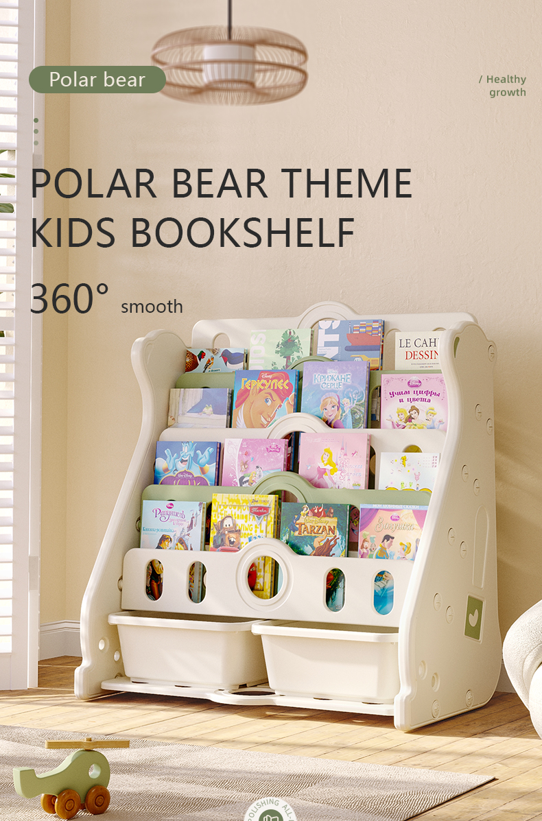 Polar Bear Custom Children Shelf Plastic Furniture Book Storage Cabinet Kids Bookshelf