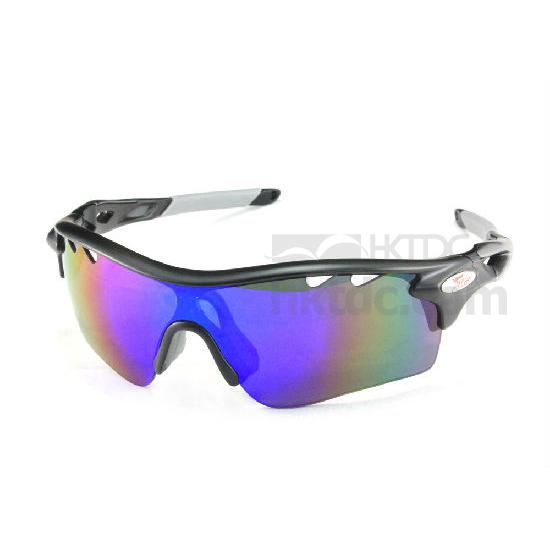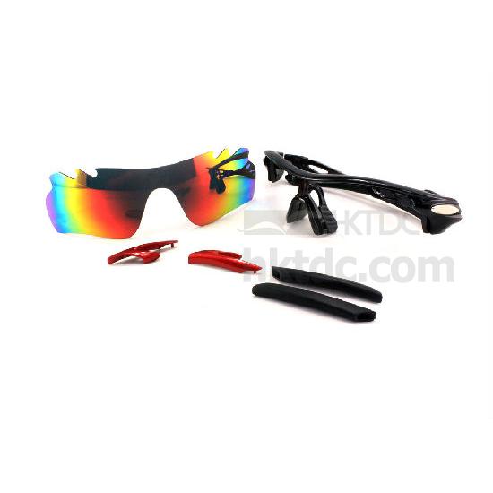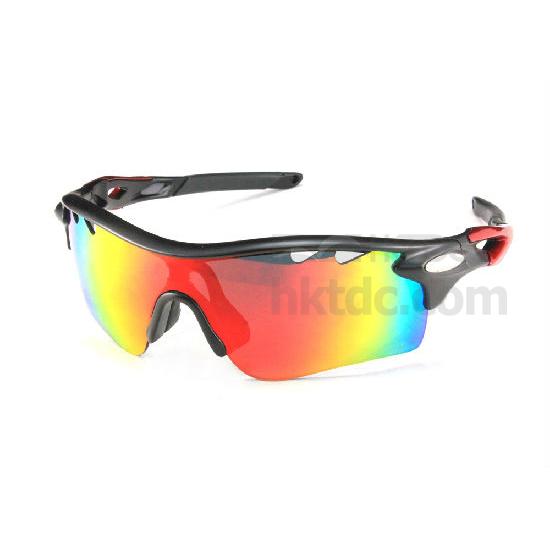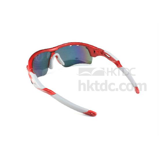 Featured is a pair of sports sunglasses designed with polarized lenses. They offer reliable protection against UV radiation. The materials chosen demonstrate superior scratch resistance for exceptional durability.