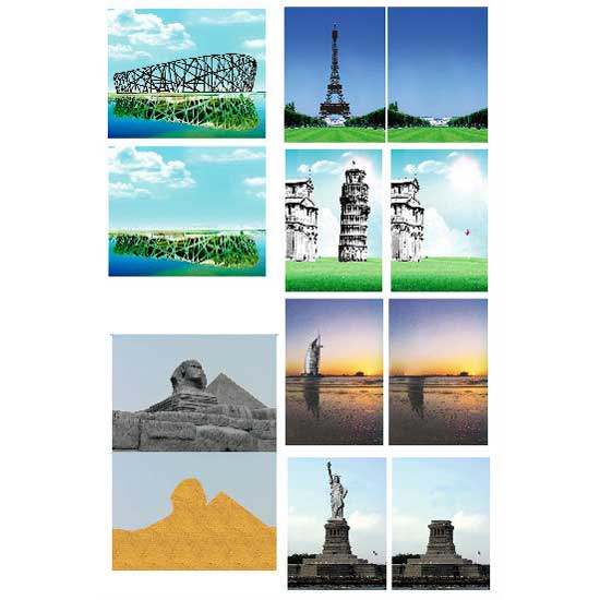 These polarized test cards are designed to test demo polarized eyewear. A hidden image is invisible to the naked eye or with regular polarized eyewear. The test cards are printed with world famous architecture graphics.