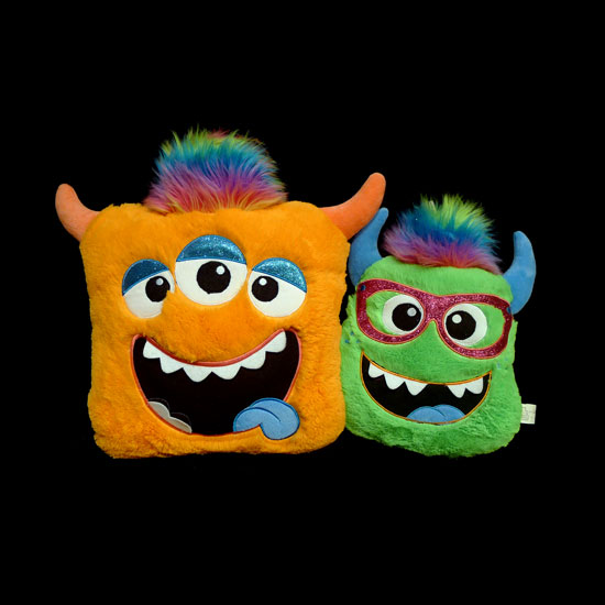 This is a collection of polyester cushions that comes in fun monster shapes. Made professionally, these colorful cushions are soft and comfortable. These cushions are made of polyester for easy cleaning.