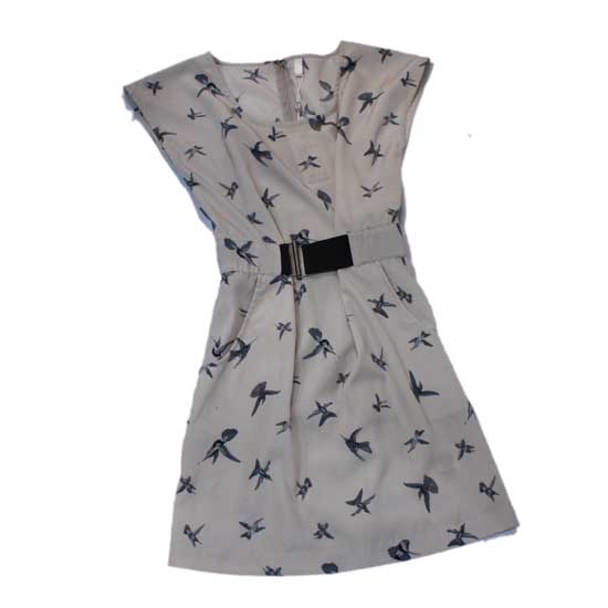 This ladies' one-piece dress is finely made of 100% polyester for a soft texture. The allover contrasting patterns lend an adorable touch to the whole design. This ladies' polyester dress is paired with a belt to create a flattering curvature.