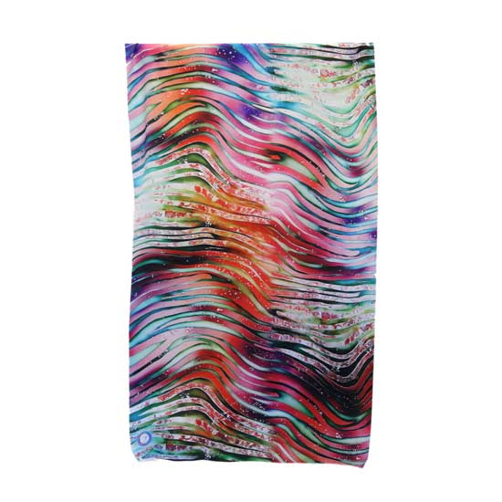 This piece of fabric flaunts a wavy pattern in assorted vibrant colors with artistic flair. Made of 100% polyester, it promises a soft texture yet tough construction. This gorgeous polyester fabric is ideal for making scarves and dresses.