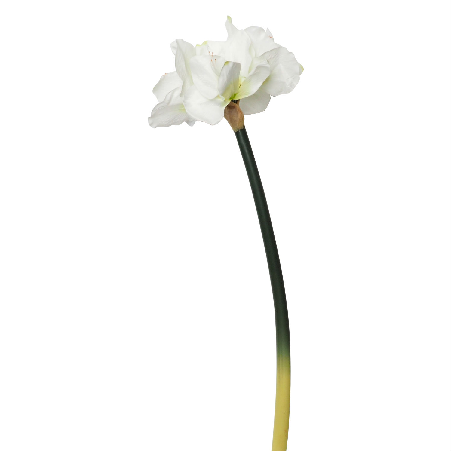 This artificial flower captures the perfect moment of blooming. It features pure white petals with green cores and a leafless stem in smooth finish. Finely made of polyester, its color, texture and beauty will last for a long period, which showcases year-round elegance without fading.