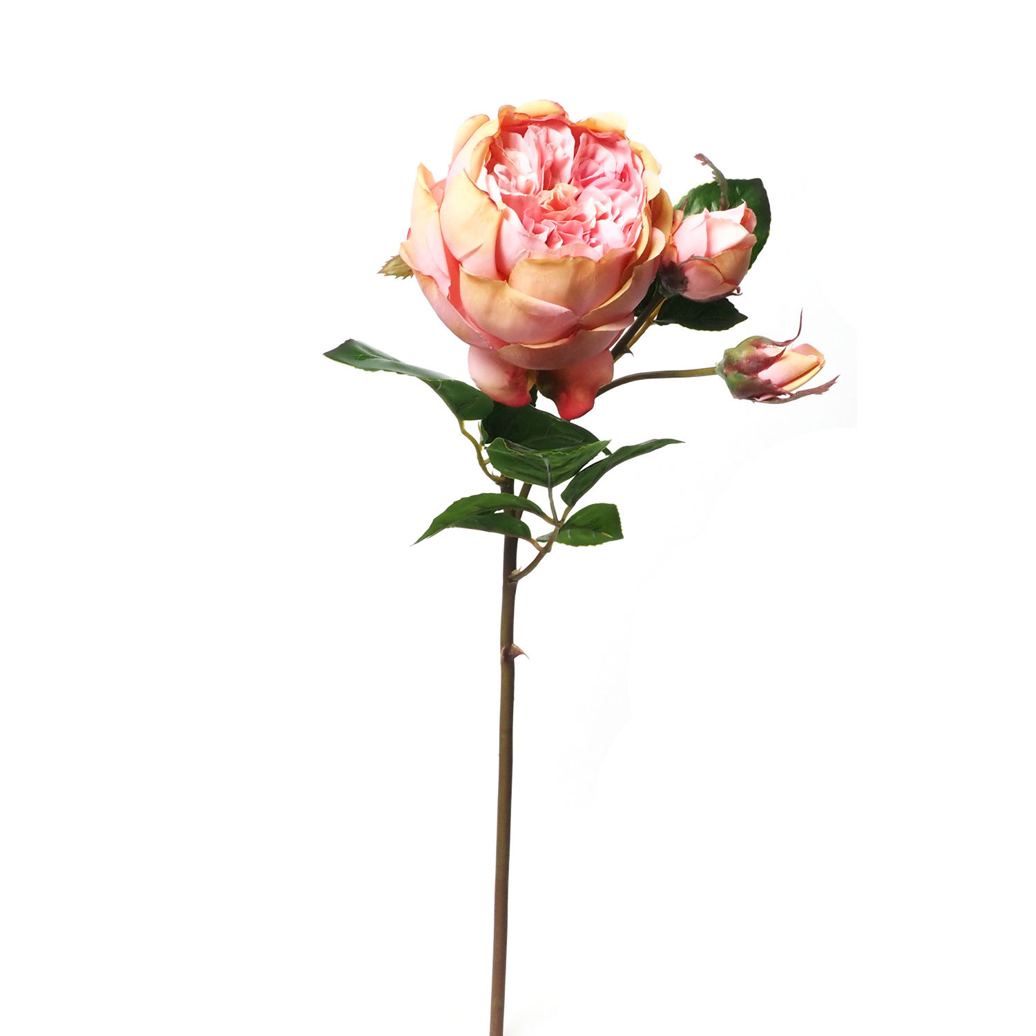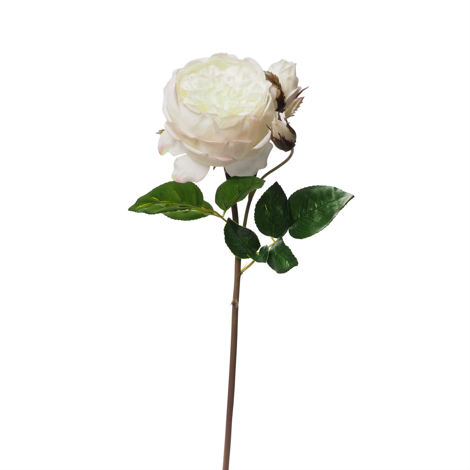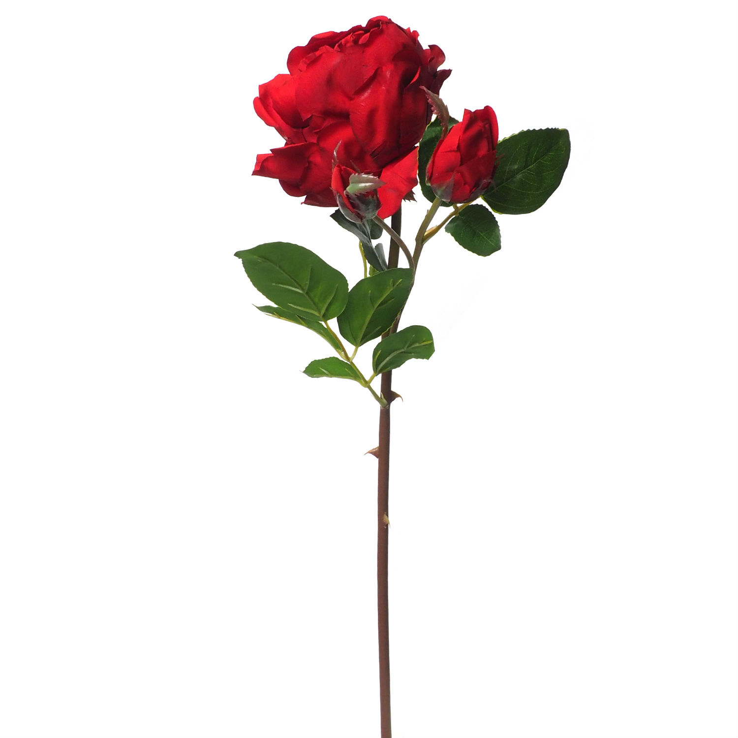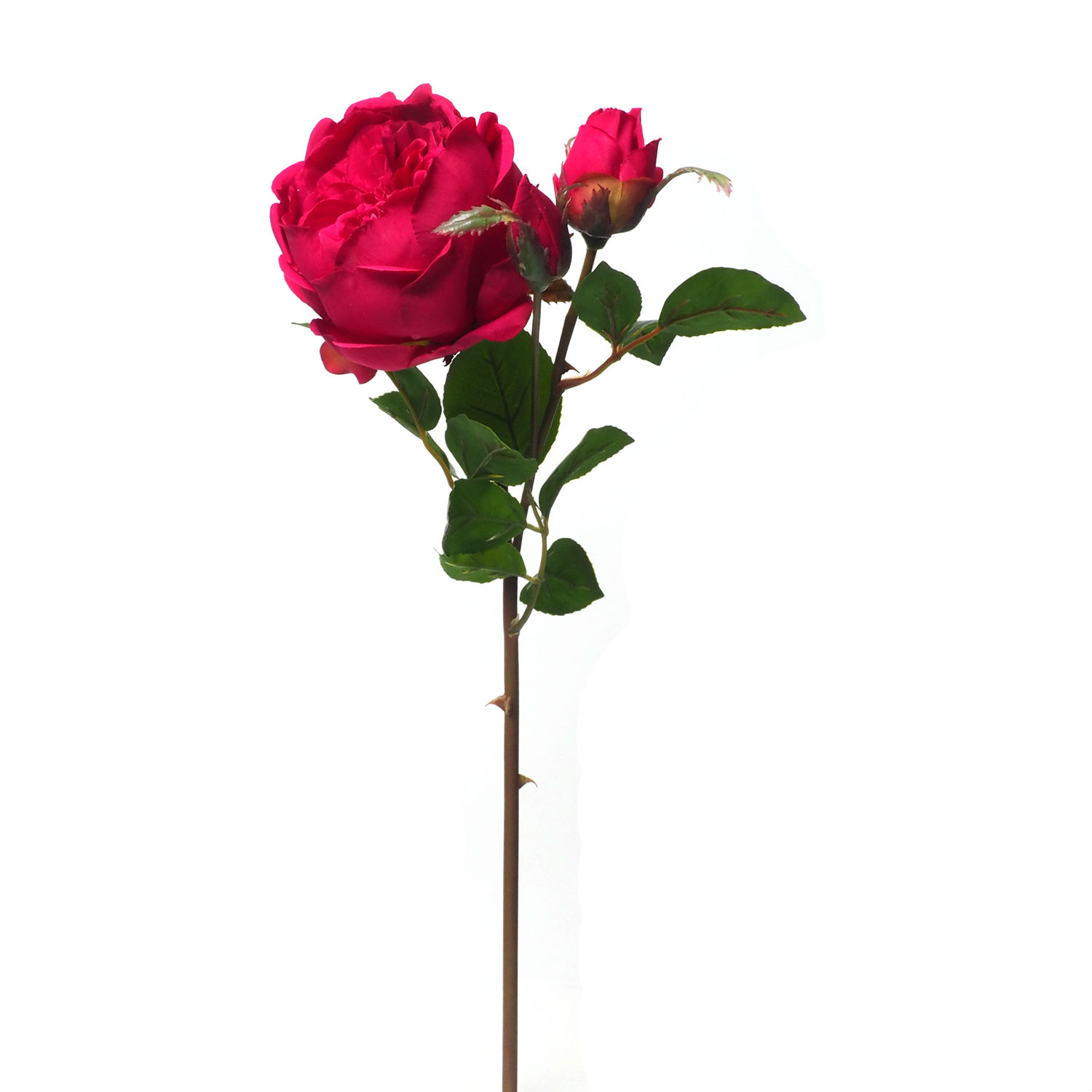 Add a romantic touch to your wedding decorations with this gorgeous polyester rose spray. It features a blossoming rose flower, a rose bud, multiple jagged-edge leaves crafted on a long stem to stand up well in flower arrangements and bouquets.