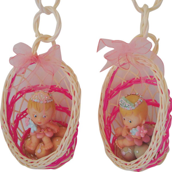 Polyresin baby in basket ornament.