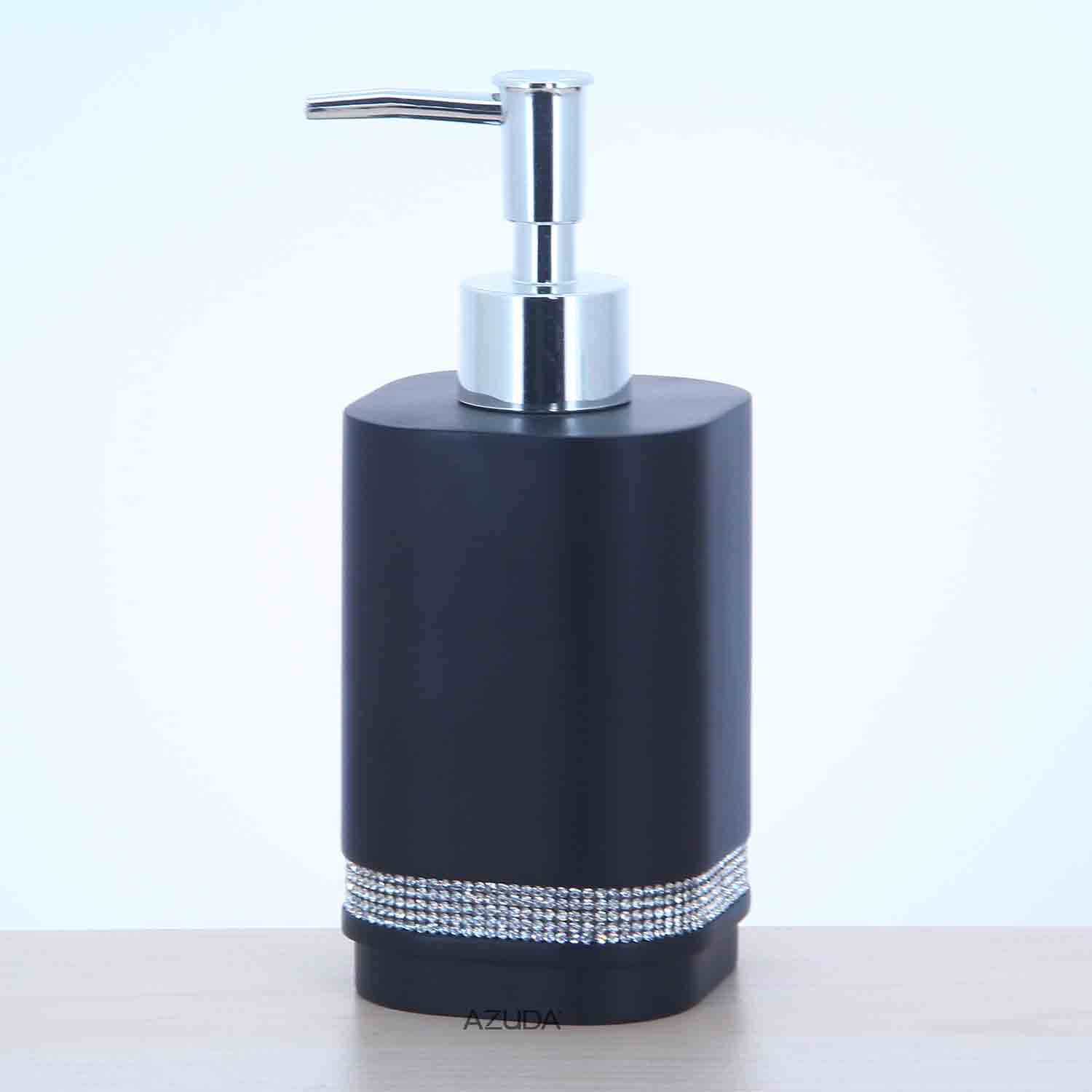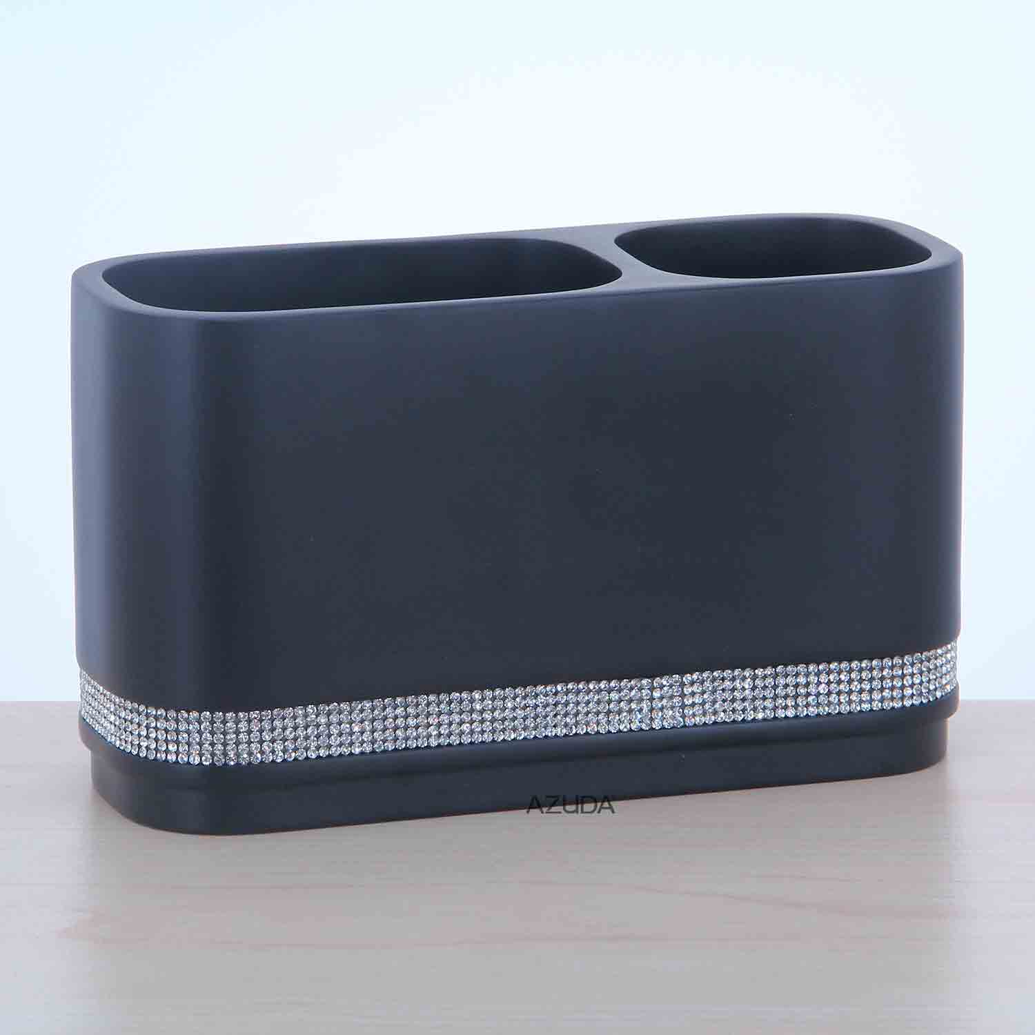 POLYRESIN BATHROOM ACCESSORIES SET IN BLACK W/DIAMOND DESIGN IN SQUARE ROUND SHAPE
