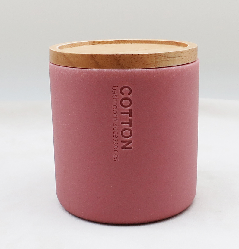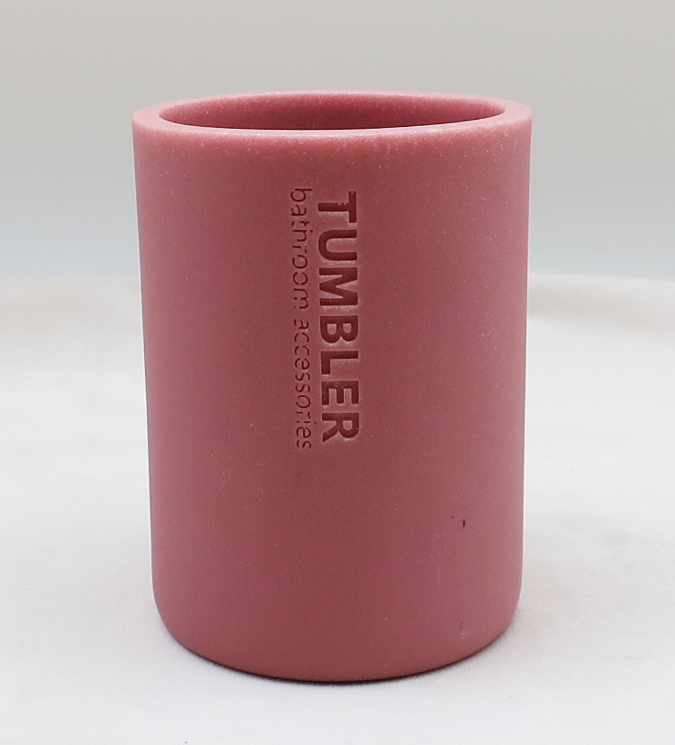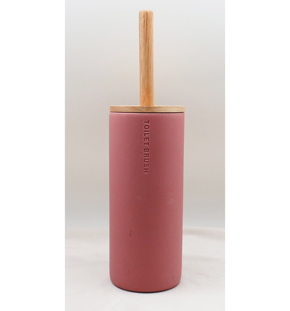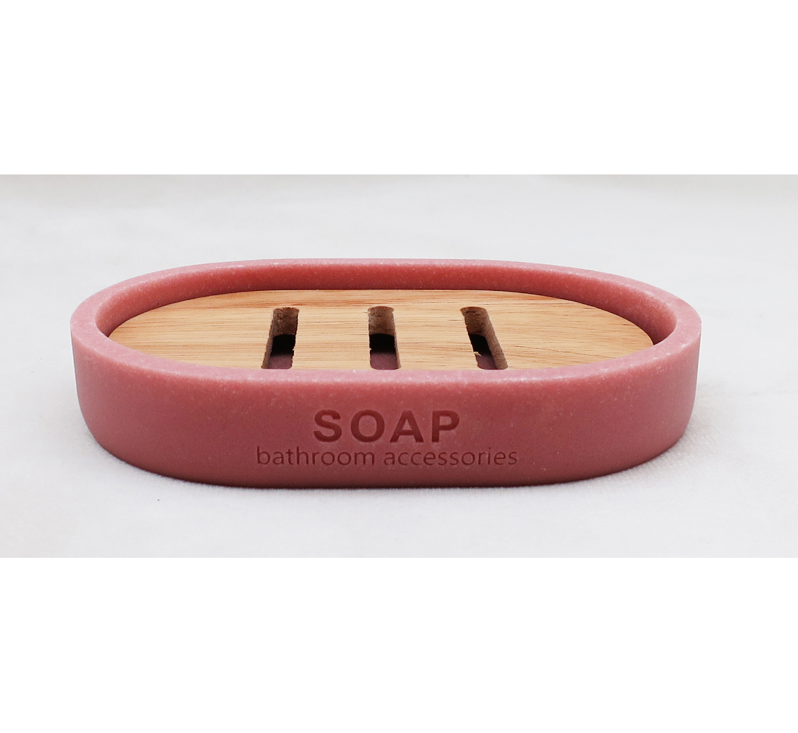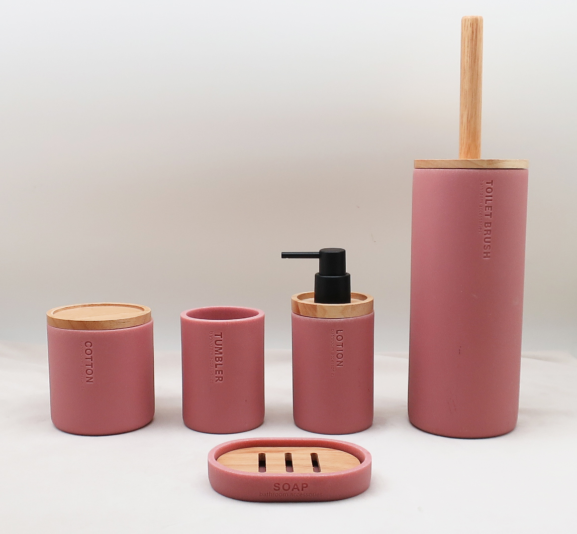 Polyresin Bath Accessories In Pink W/Bamboo Lid