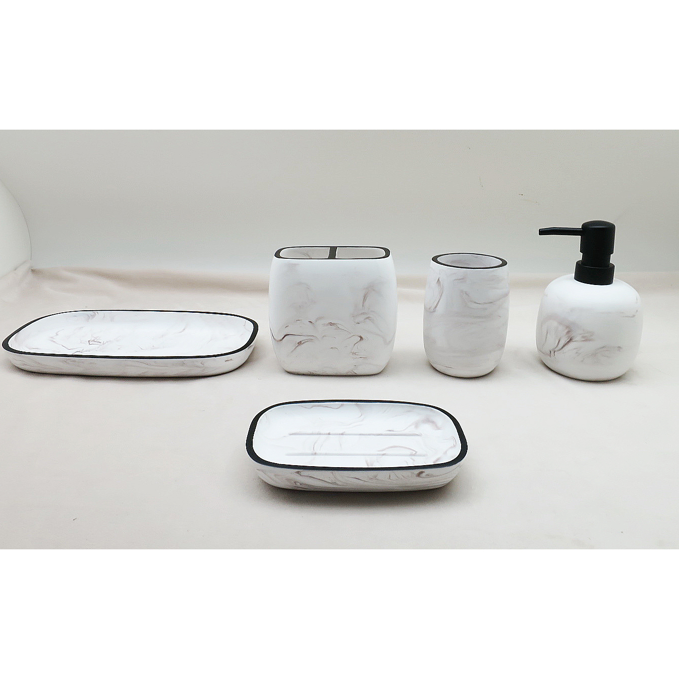 POLYRESIN BATHROOM ACCESSORIES SET MARBLE EFFECT