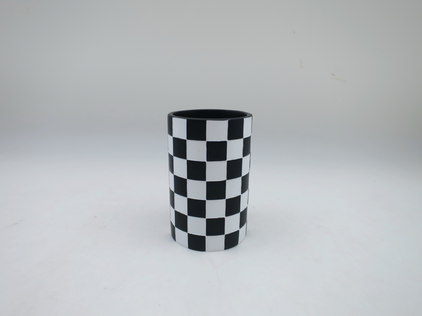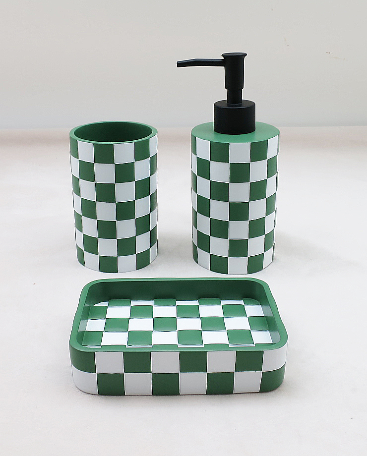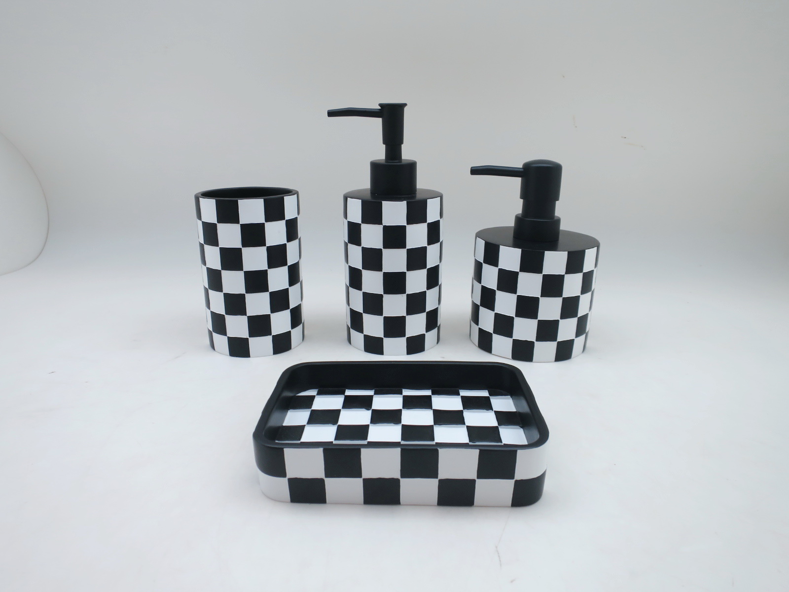 Polyresin Bathroom Accessories Set Checkerboard Design
