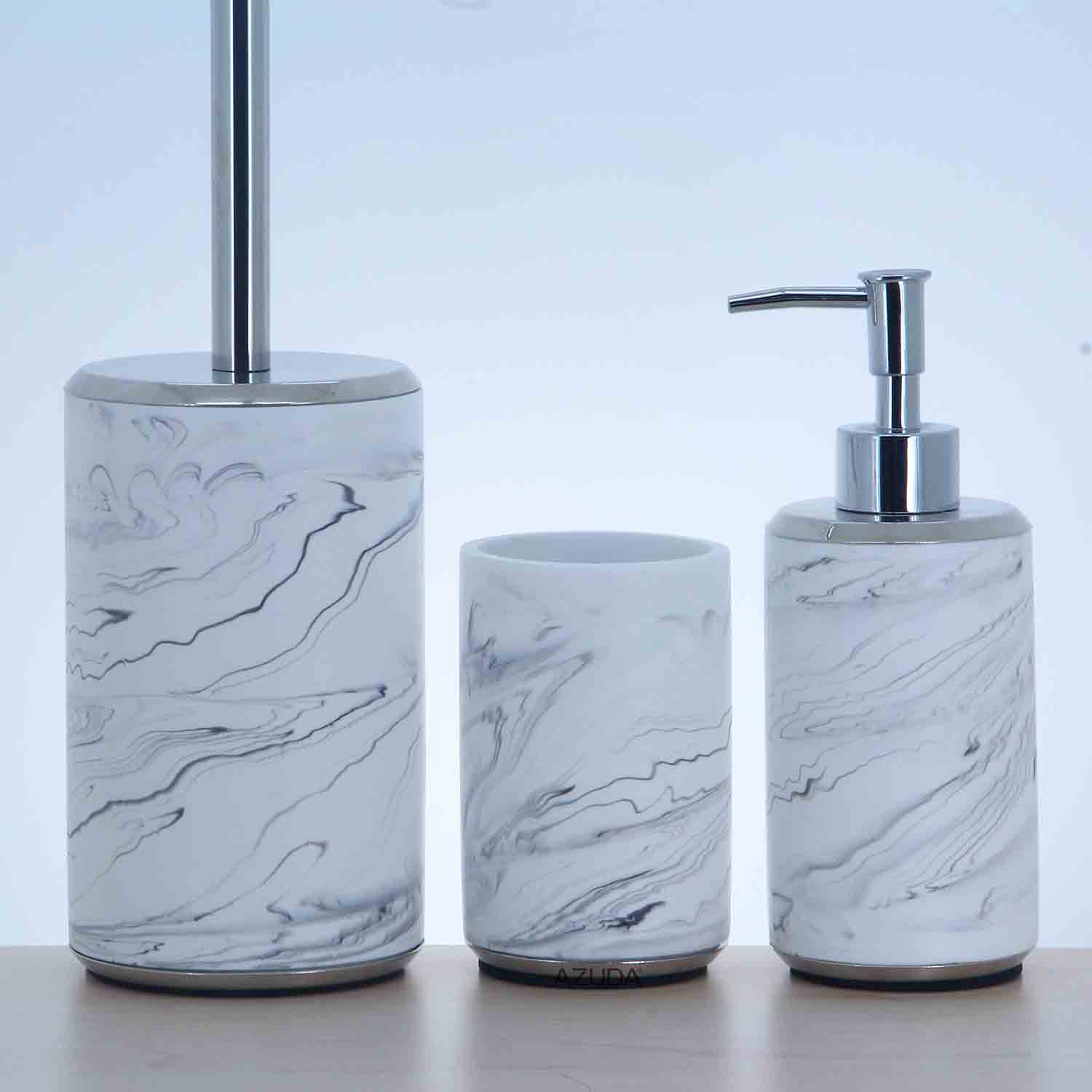Marble Effect Poly Bathroom Set w/Metal Lid / Base