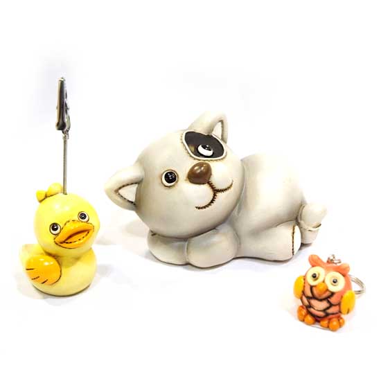 Displayed here are a key chain, a card holder and a coin bank coming with adorable cartoon animal shaped designs. The set is made of top quality poly resin for a refined look as well as a long using time. These beautiful cartoon animals are sure to spice up your desktop.