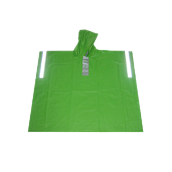 This is a poncho-style raincoat designed in bright green. The high-quality PVC material lets it have a long service life. This raincoat is also made with excellent craftsmanship.