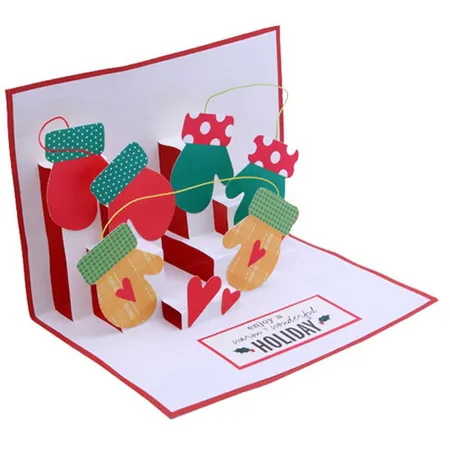 Pictured is a Christmas card with a delightful pop-up design. The eye-catching and vivid patterns give a refreshing look. This Christmas card offers an innovative to greet your friends.