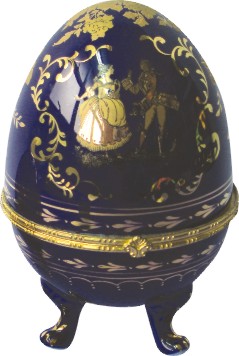 Porcelain egg shaped jewellery box with classic figurine with size in D4" x H6".